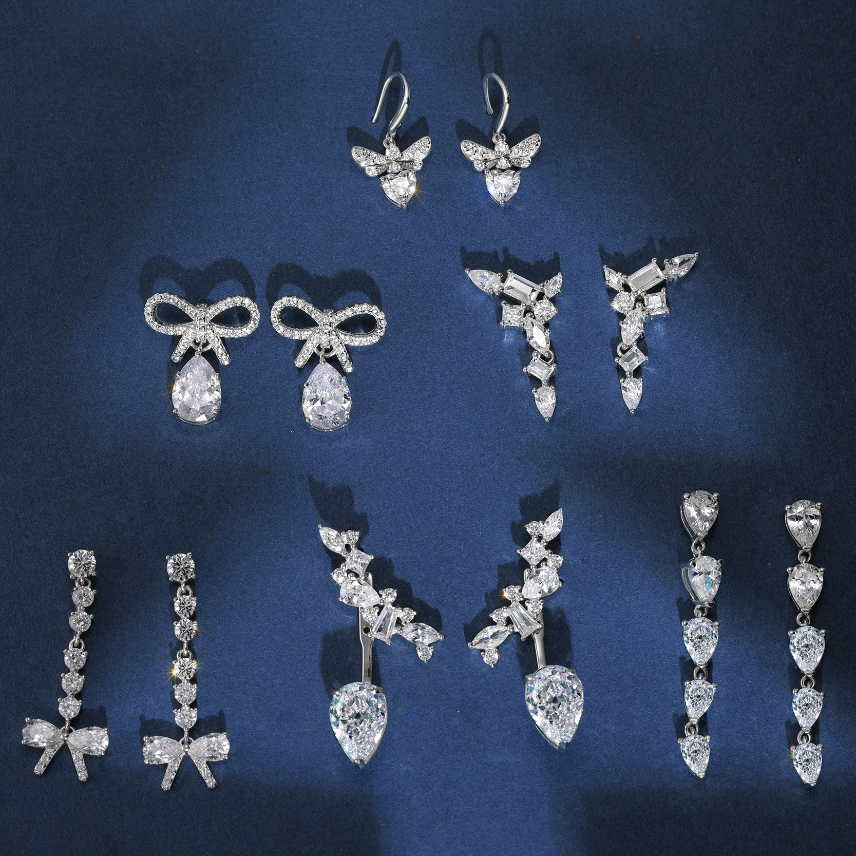 Beautiful Elegant CZ Butterfly Bow-knot 925 Sterling Silver Dangling Earrings