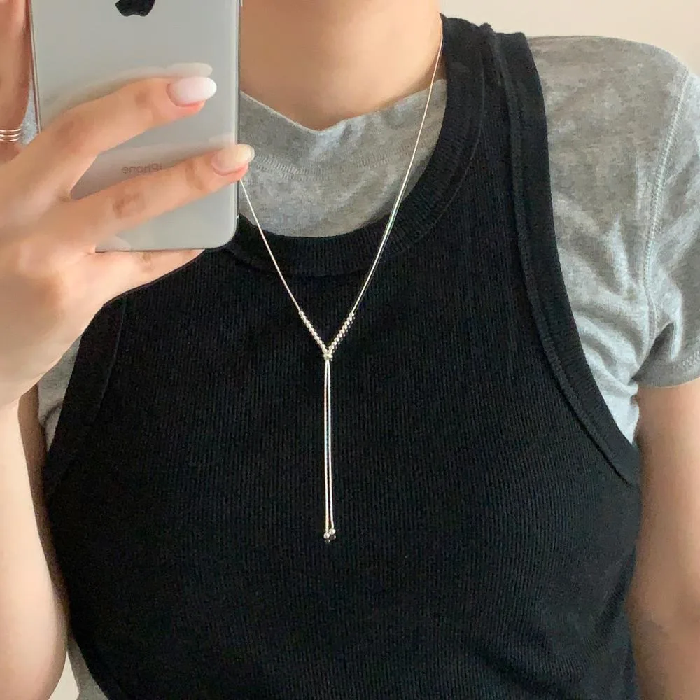 Fashion Round Beads Adjustable Tassels 925 Sterling Silver Necklace