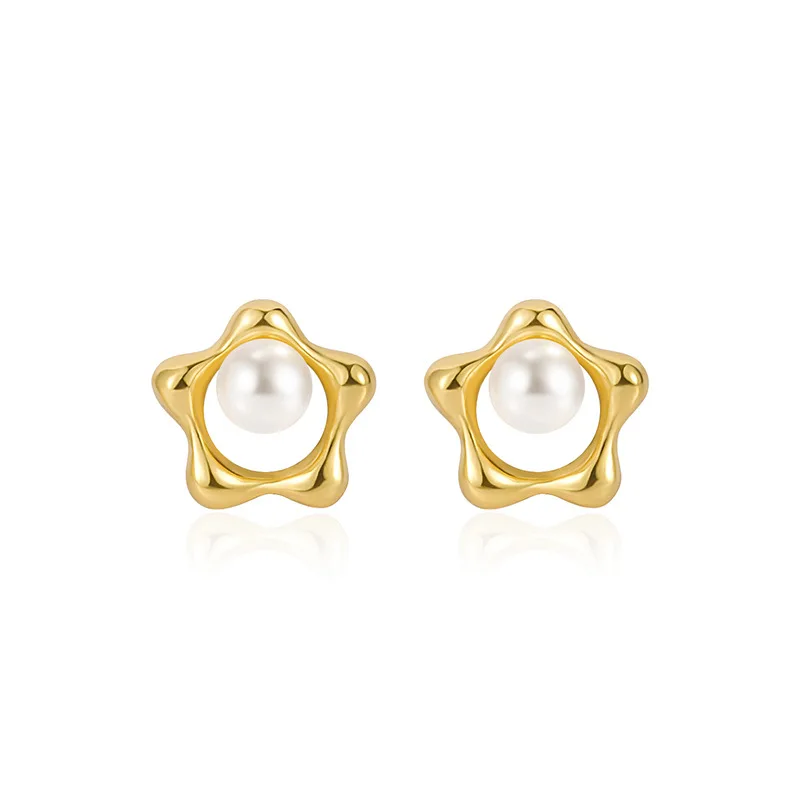 Elegant Starflower Design Natural Pearl S925 Sterling Silver Earrings