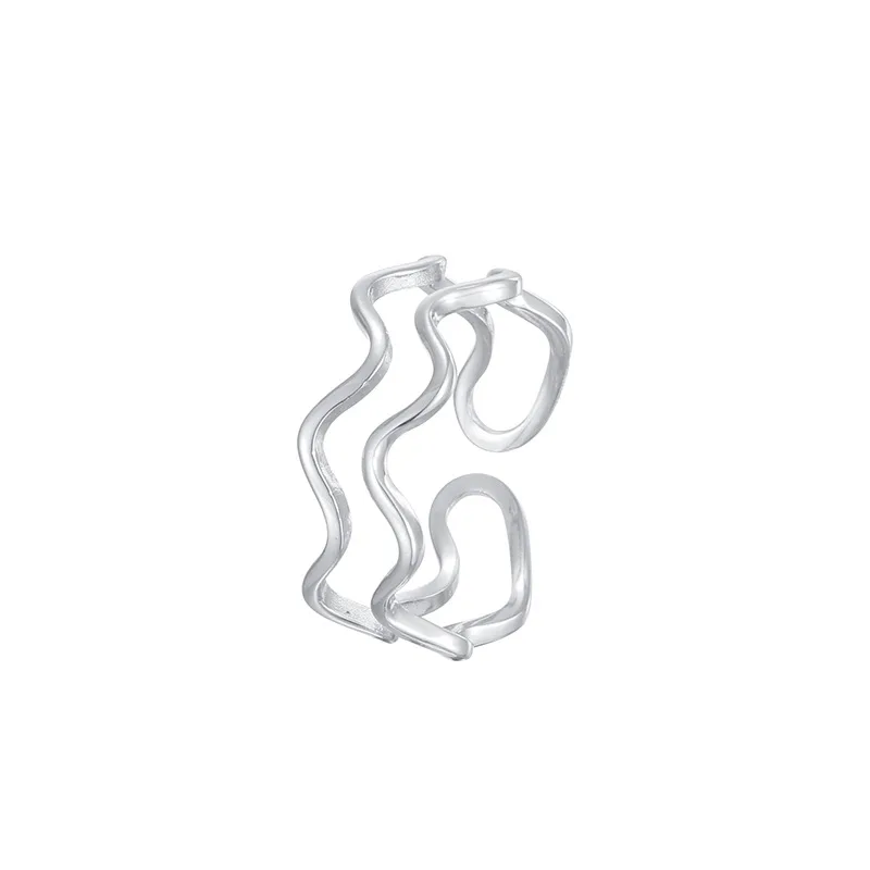 Double Layer Wave Design Women Fashion Geometric Minimalist Open Band Adjustable
