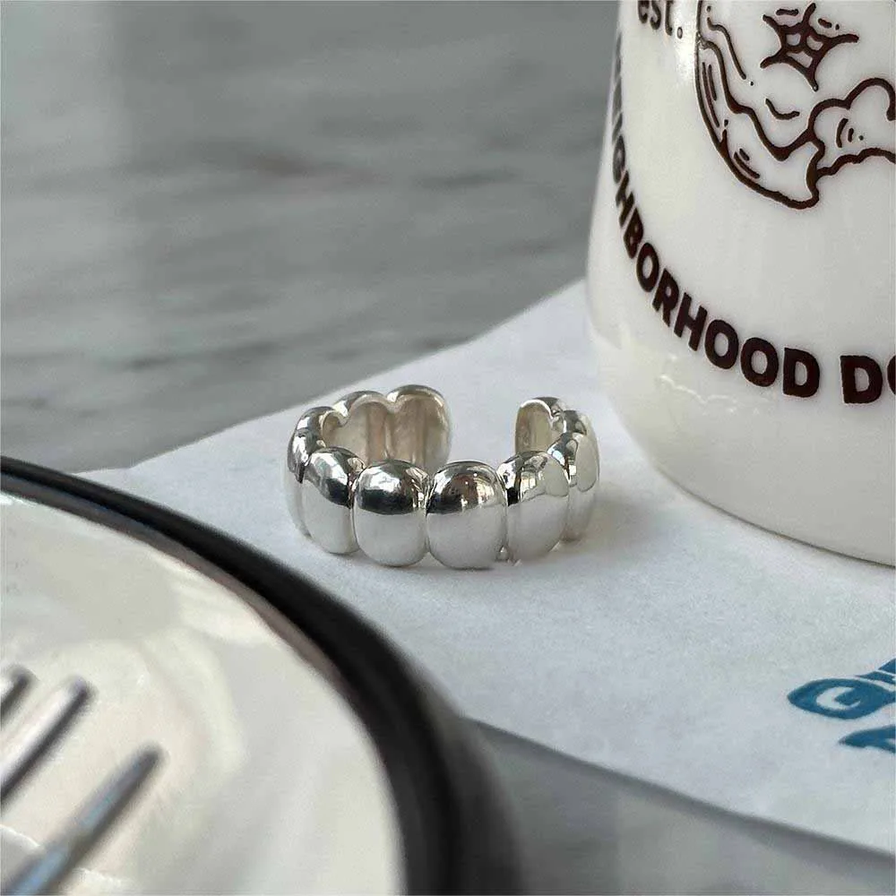 Modern Oval Geometry 925 Sterling Silver Adjustable Ring