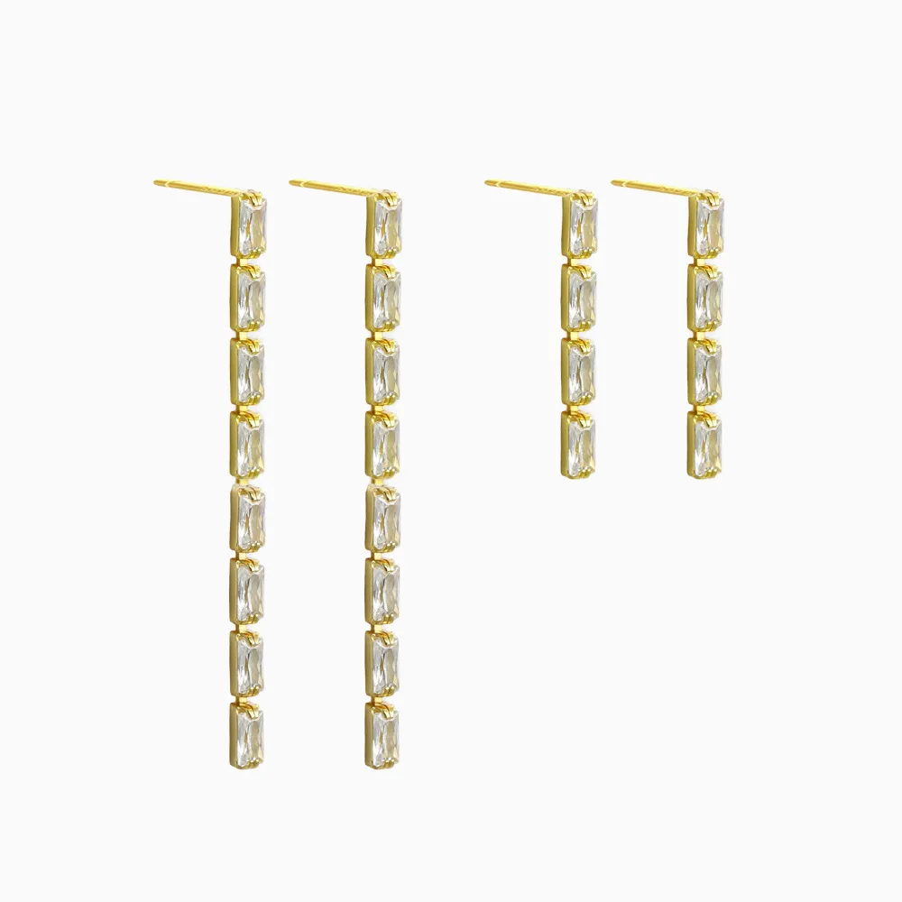 Modern Women Baguette CZ 925 Sterling Silver Tassels Dangling Earrings