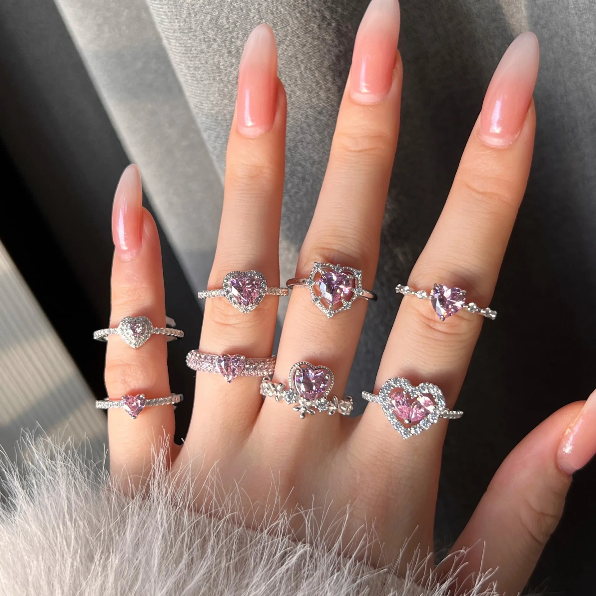 Wedding Beautiful Pink 8A Cubic Zirconia Heart 925 Sterling Silver Adjustable Ri